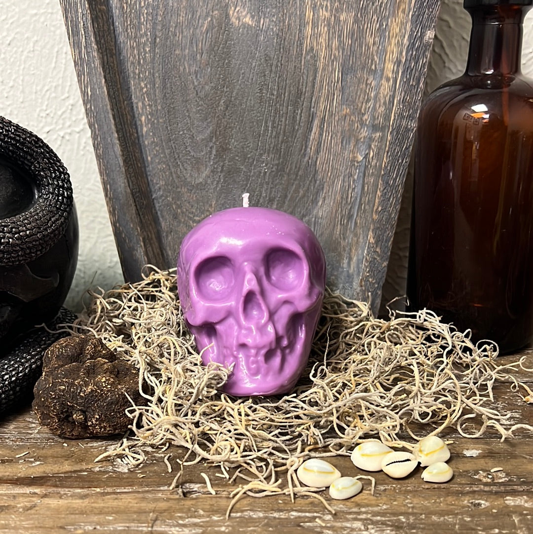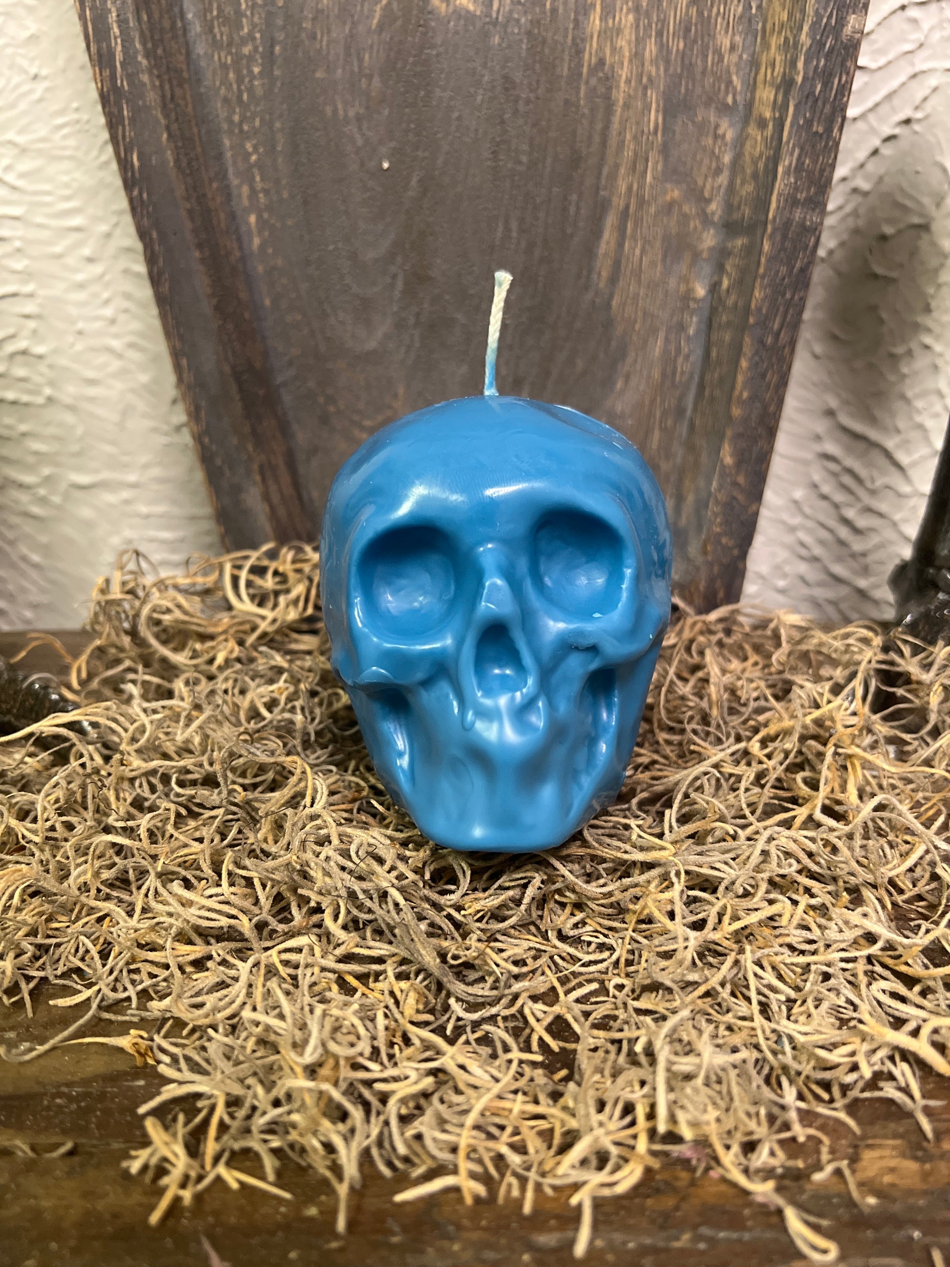 Medium Skull Candles are 4 1/8 inches tall and come unfixed so you can charge them however you like with your choice of ingredients. Each candle is handmade by us and is not a factory product so you are getting the best quality. Variations in color may occur from candle to candle. Pick the color of your choice before adding it to the cart.