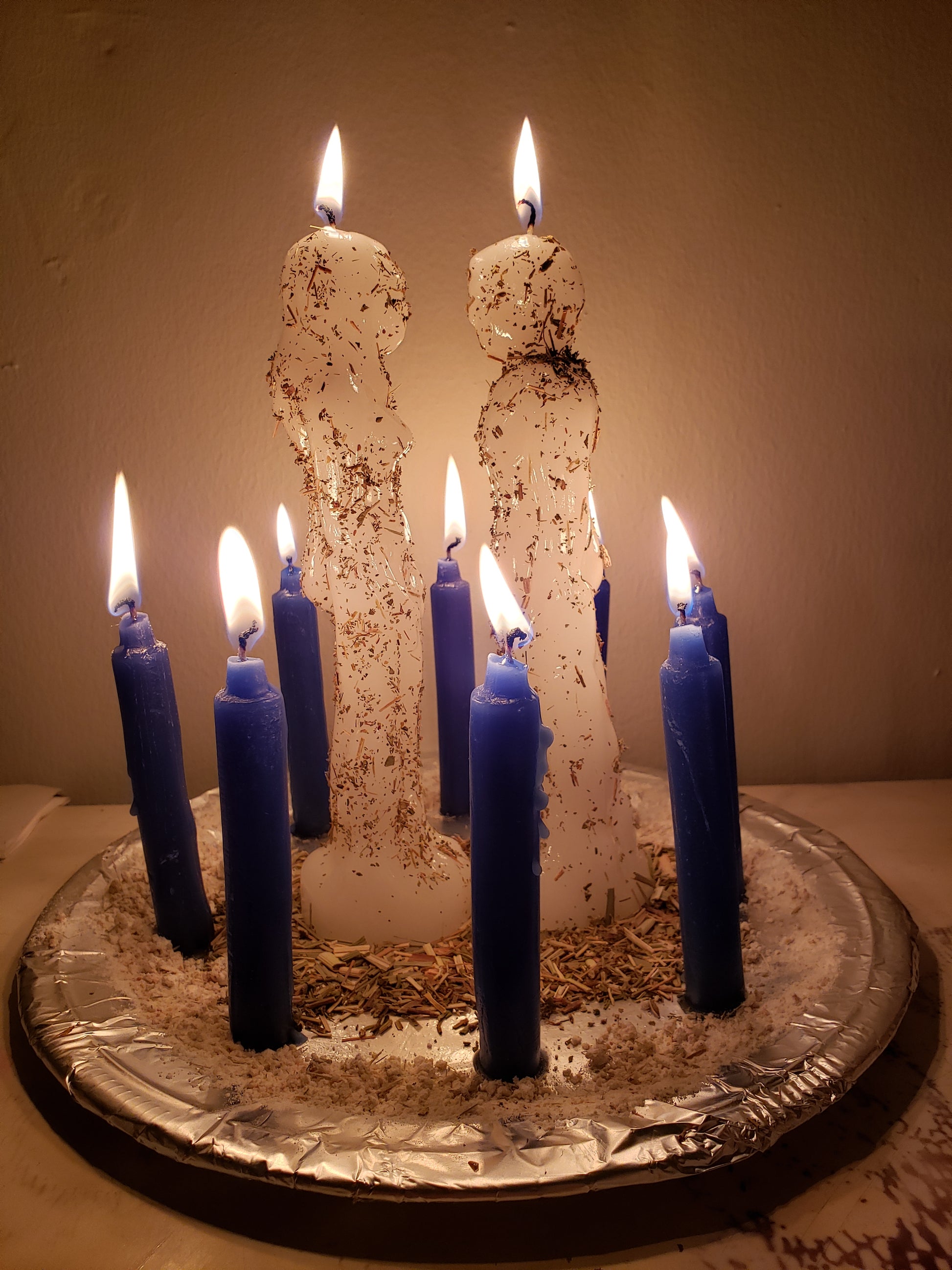 We will bless white figural candles, dress them with the appropriate oils and herbs, and dress and bless additional taper candles.