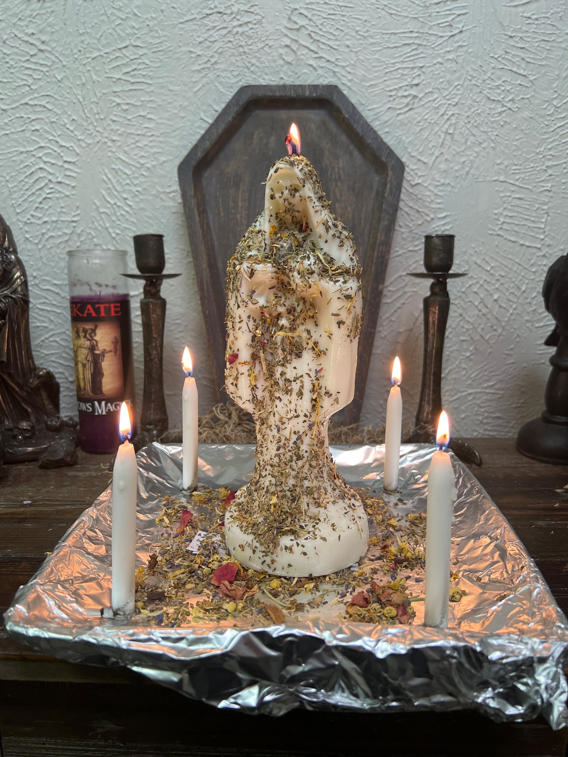 This working is to petition Santa Muerte for your cause this working will be done on your behalf with your choice of robe from White, Red or Black.