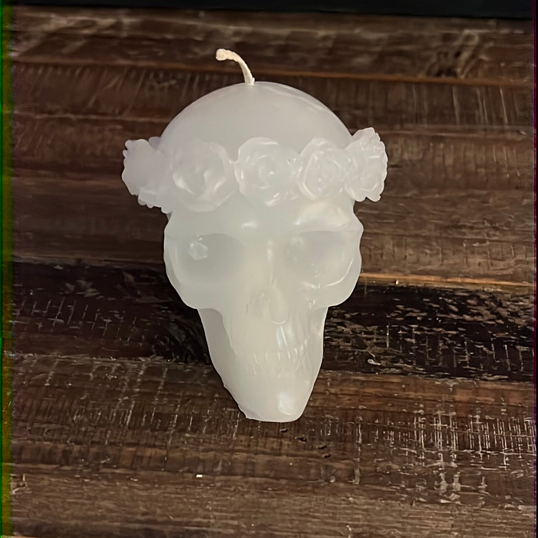 Skull with Crown of Rose Candles are perfect for your magical workings. These candles are 4 1/8 inches tall and come unfixed so you can charge them however you like with your choice of ingredients. Each candle is handmade by us and is not a factory product so you are getting the best quality. Variations in color may occur from candle to candle. Pick the color of your choice before adding to the cart.