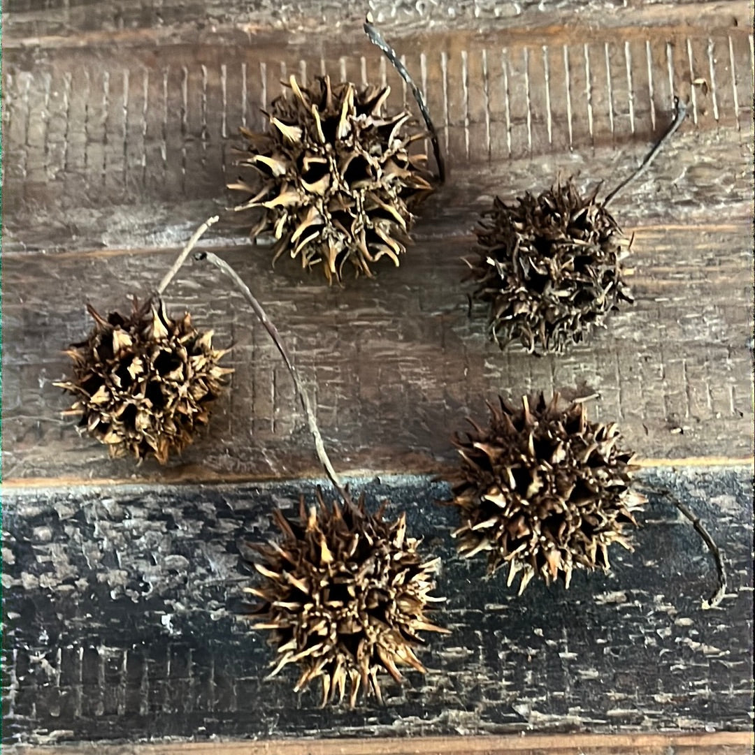 Witches Burr Magical Uses: Witches Burrs, aka sweet gum balls, are used for protection and often kept on your altar to keep everything safe. They can be used for fertility as they are the seed pods of the sweet gum tree. Witches Burrs can be dressed and left in a target's path for love, to hot foot, for banishing, or for other purposes.